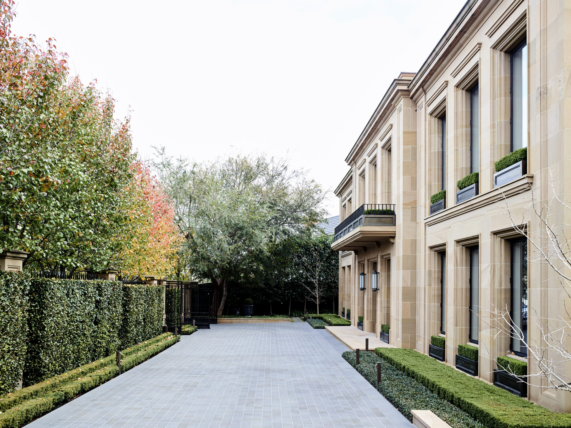 This is a house where the façade speaks volumes. Stretched across the breadth of the site, it is a solid stone edifice painstakingly crafted by Melbourne’s finest stonemasons.